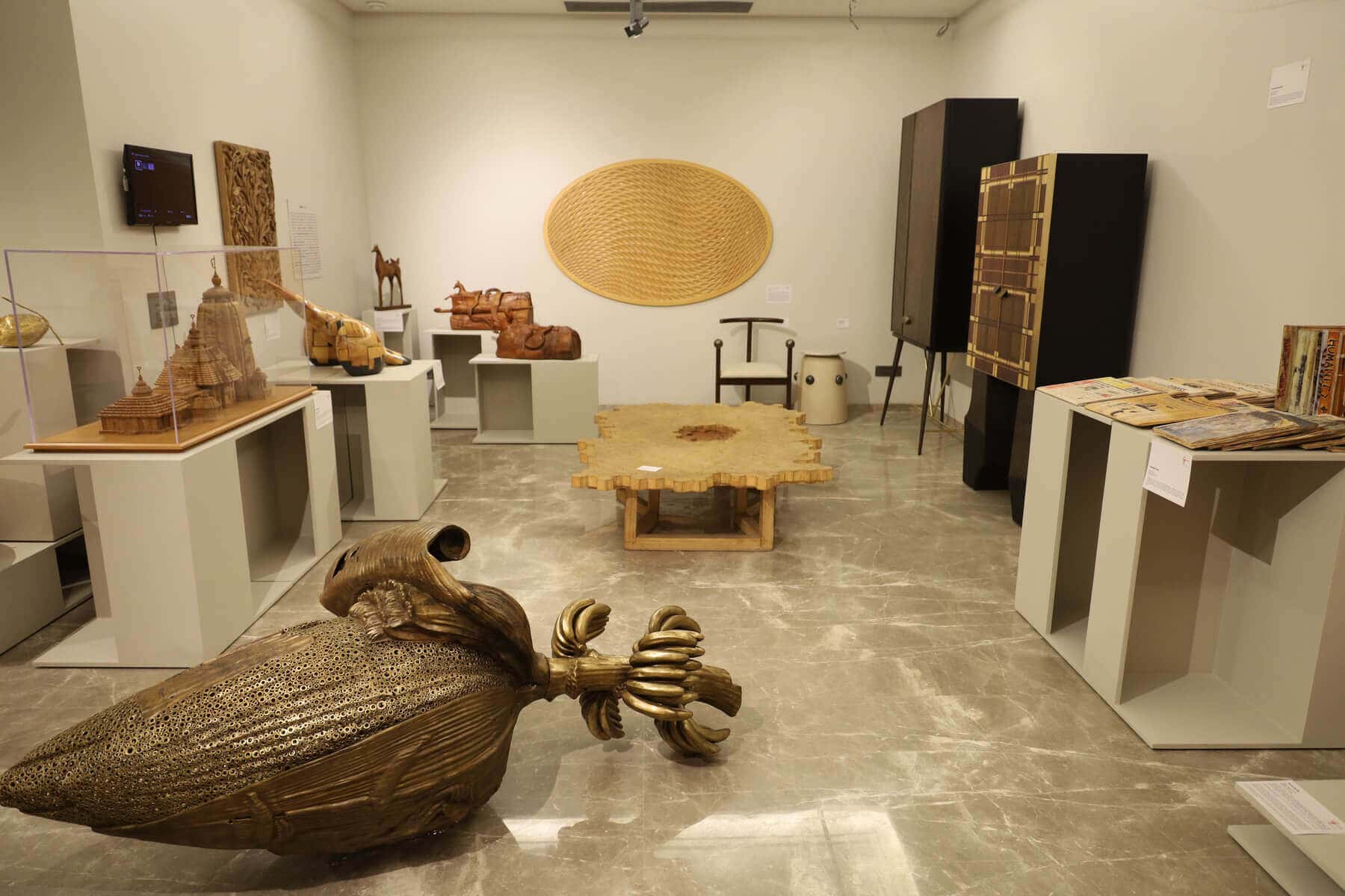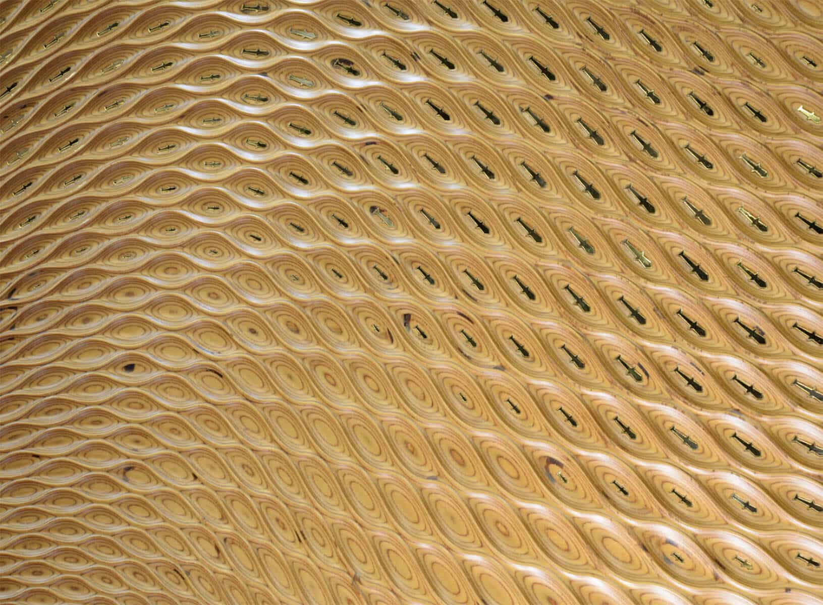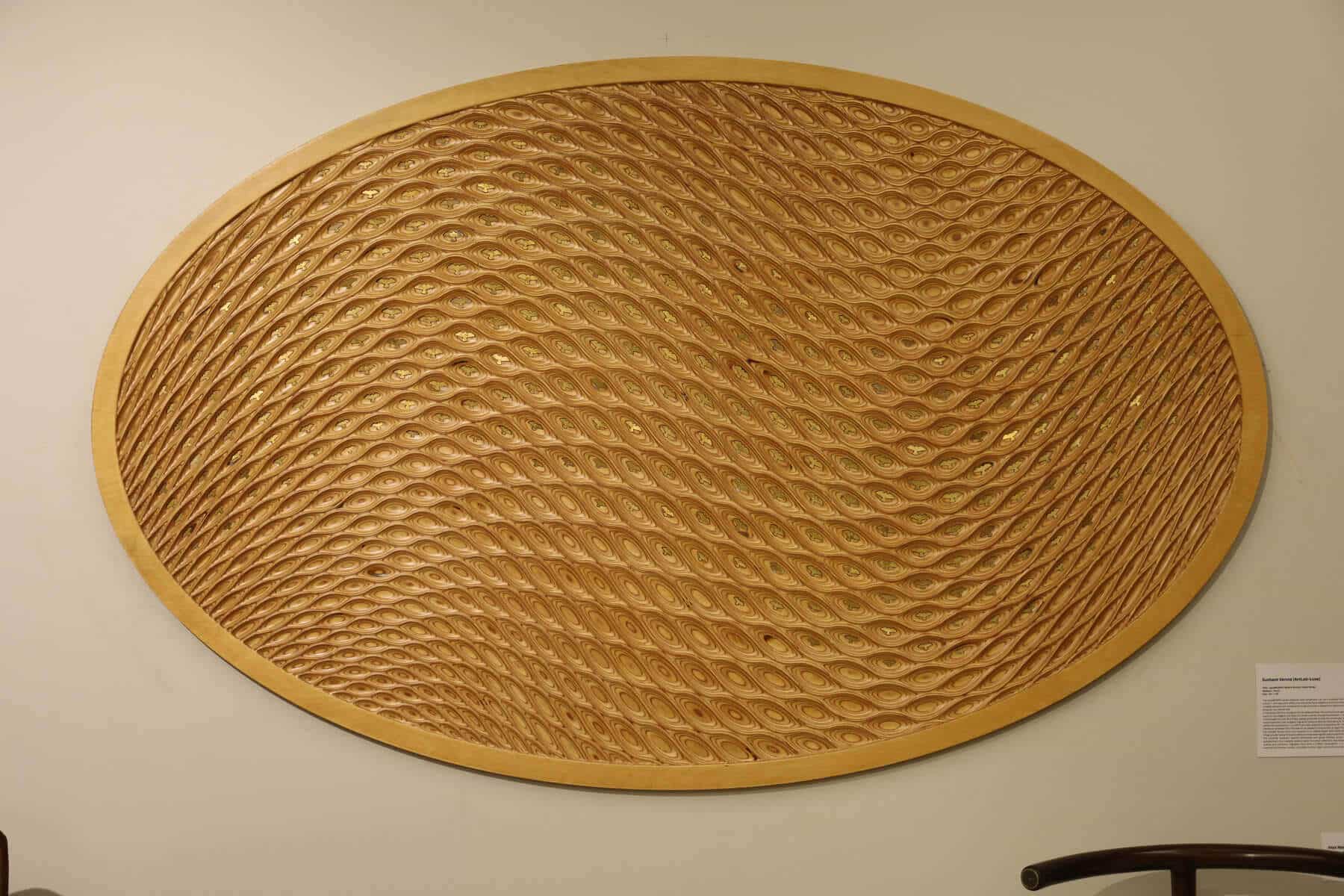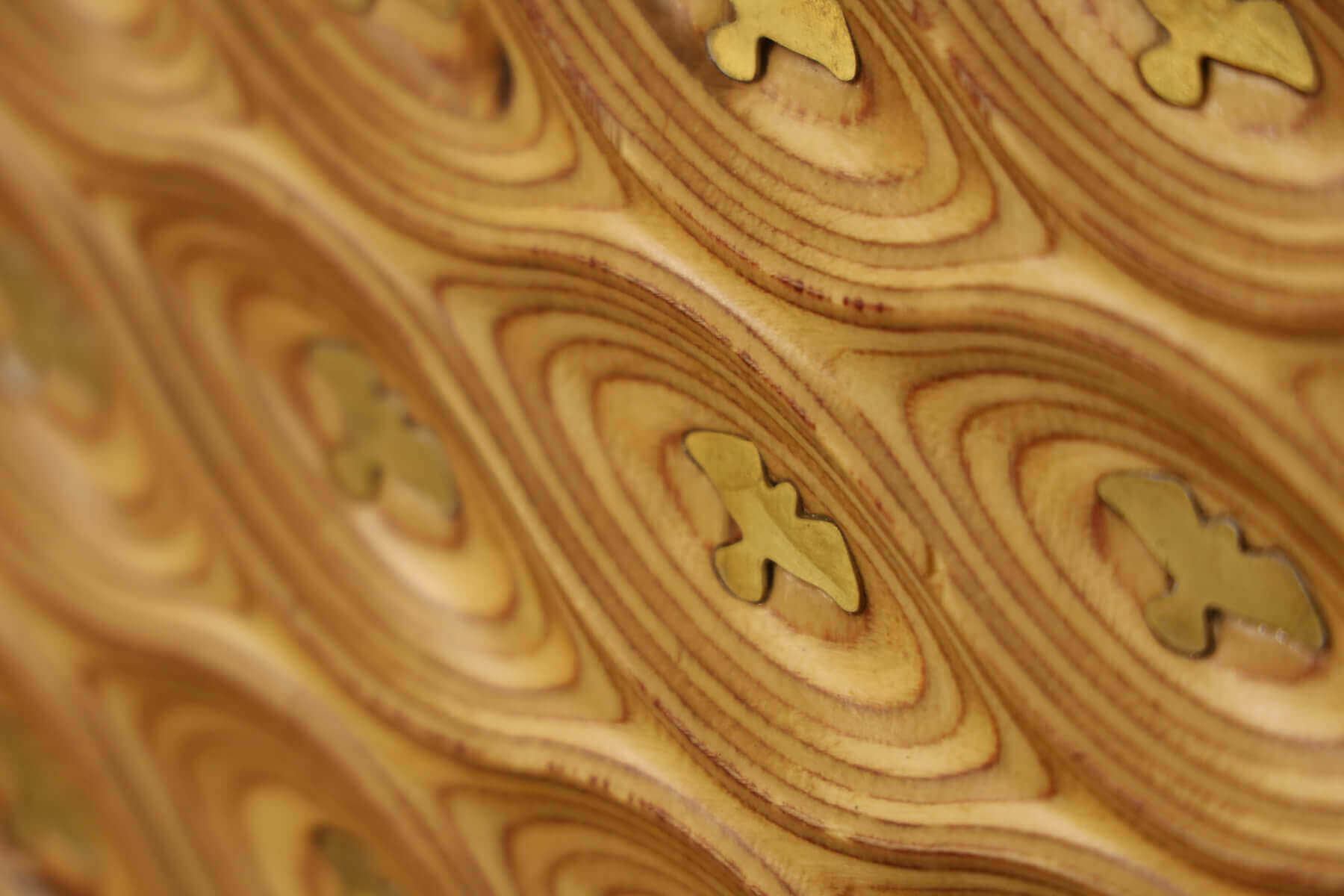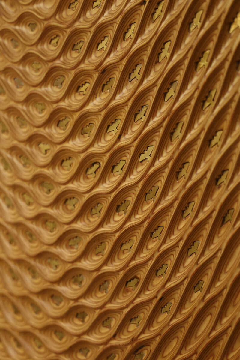 The contrast between layered birchwood and gloss finished brass creates a strong yet balanced juxtaposition. One material absorbs light; the other reflects it. One feels earthy and grounded; the other precise and luminous. Together, they form a unified composition — a wall artwork where nature and material refinement coexist, and where motion, light, and surface come together as one.