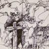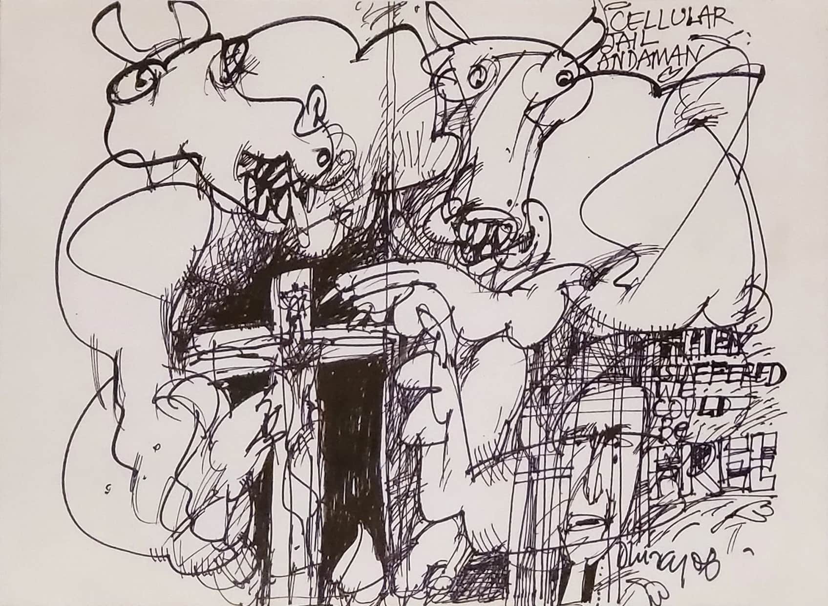 Initially in the 1960s, Choudhary made the condition of the downtrodden and displaced the focus of his work. Whether it is the famine-stricken peasants of Bengal crying out for some food, the miserable farmers of the South gathering the harvest in other`s fields, a murdered agitator lying on a Mumbai street, drifters or prostitutes, Dhiraj lends them an extremely ironical air. They are all the allegedly free citizens of a country that was supposed to awake to freedom but didn`t. Some of his pen and ink drawings from the 70`s and 80`s are absolutely frightening, reflecting his own intense reaction to witnessing the horrors of Indian society. There are beggars fighting with animals on the road over scraps of food. There are scenes of a feast, where the affluent are dicing and popping morsels of the poor into their insatiable mouths. This metamorphosed into his disenchantment fuelled Banalata series of the 90`s, where Choudhary painted the character from Jibananda Das` famous poem, `Banalata Sen of Nattore.`