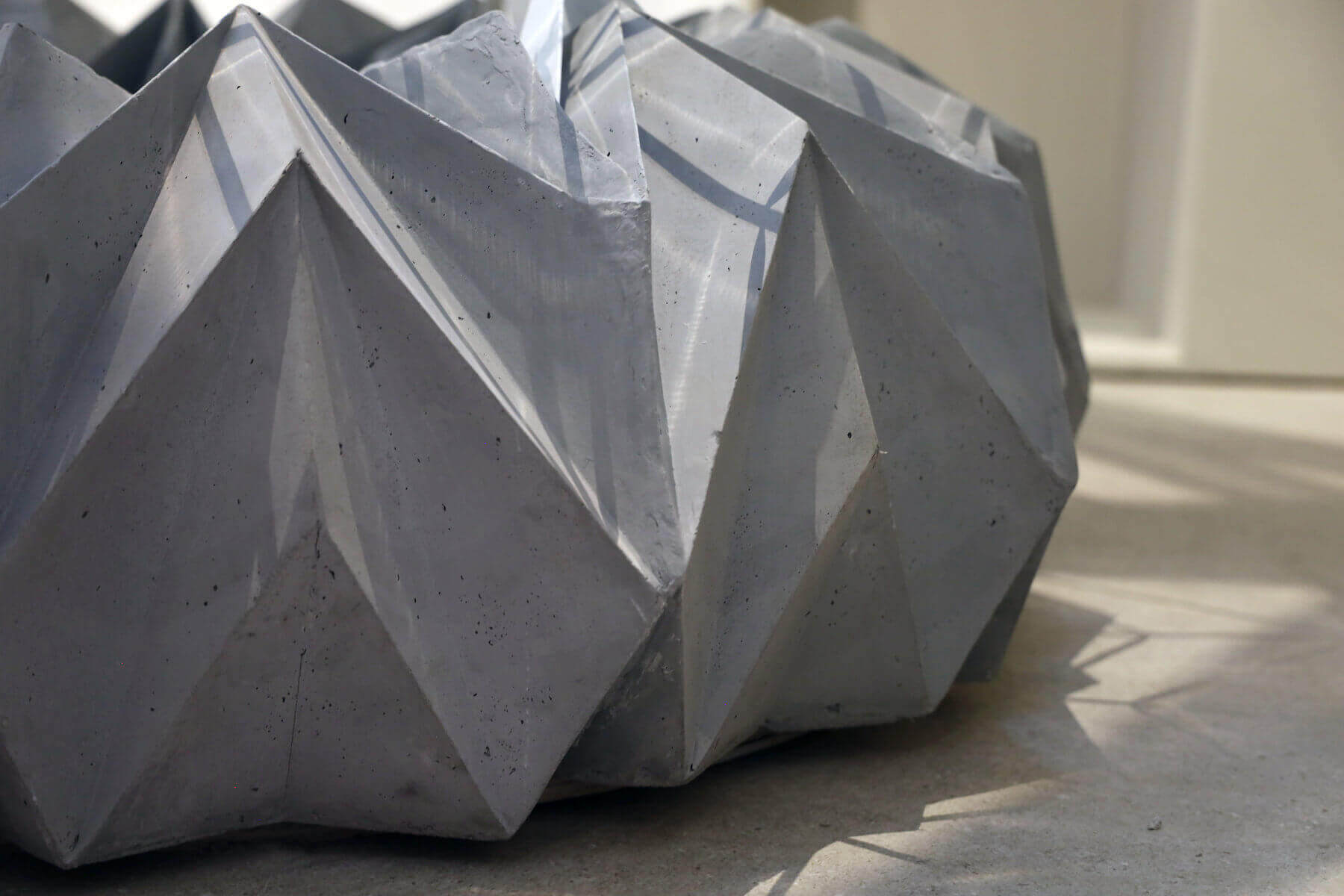 The Constellations is an exploration of a softness and fuzziness which comes from objects being very remote, being transformed into precision and solid presence when they come into close proximity. The pieces are made from concrete a material made from cement, but a chemical process and a hyper precise mould renders the soft powdery fuzziness of cement into the solid presence that is concrete. Modular and configurable into different compositions, the work speaks of dichotomy of distance and proximity, of how the geometry and position of constellations hundreds of light years from us determine what we are and who we become, the internal transformation from cement to concrete. Within concrete hides the element of fire, just as it does in the heart of the stars that make the constellations.