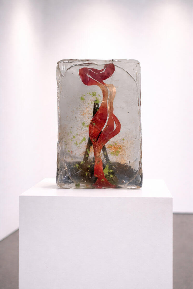 The piece explores themes of containment, fragility, and the passage of time, as if capturing a fleeting moment within a frozen medium. Its polished surface and sculptural presence make it ideal for modern interiors, gallery displays, or collectors seeking a unique statement piece that bridges painting and sculpture.