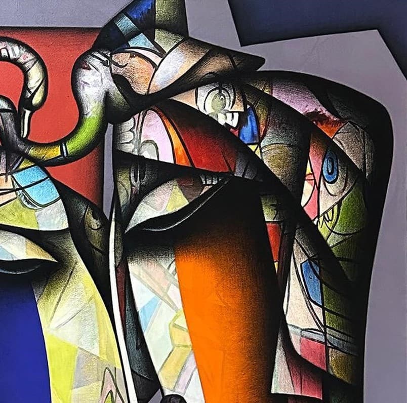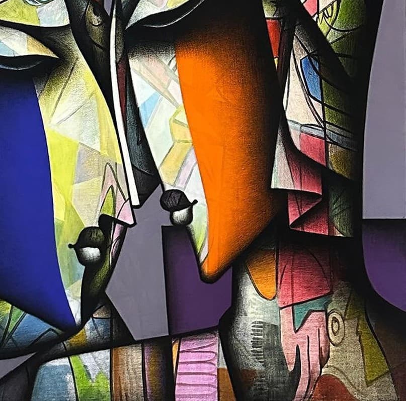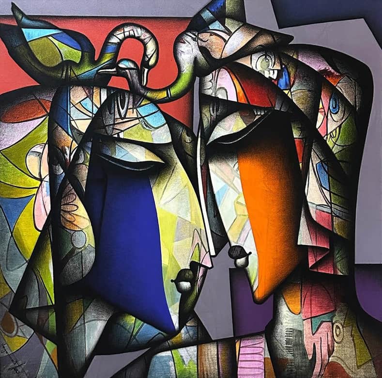 The artwork’s dynamic interplay of color, form, and symbolism makes it a powerful visual narrative of love, unity, and timeless companionship—ideal for collectors seeking expressive and meaningful contemporary art.
