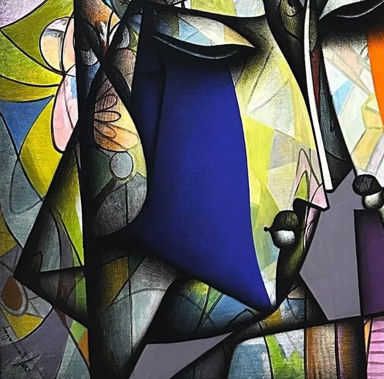 Jagannath Paul | Eternal Love | Charcoal & Acrylic on Canvas | 60 x 60 inches | 2023