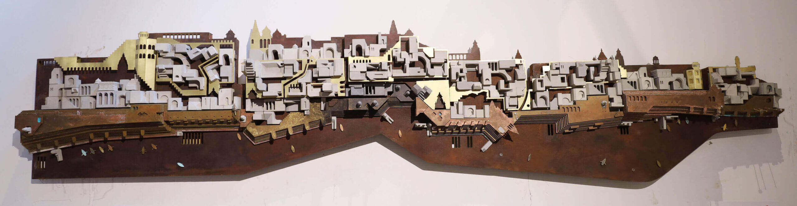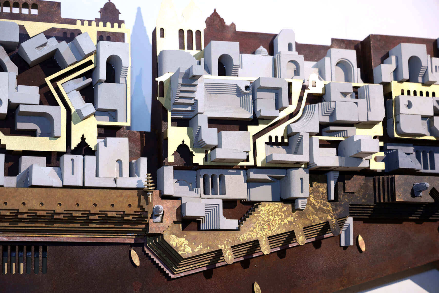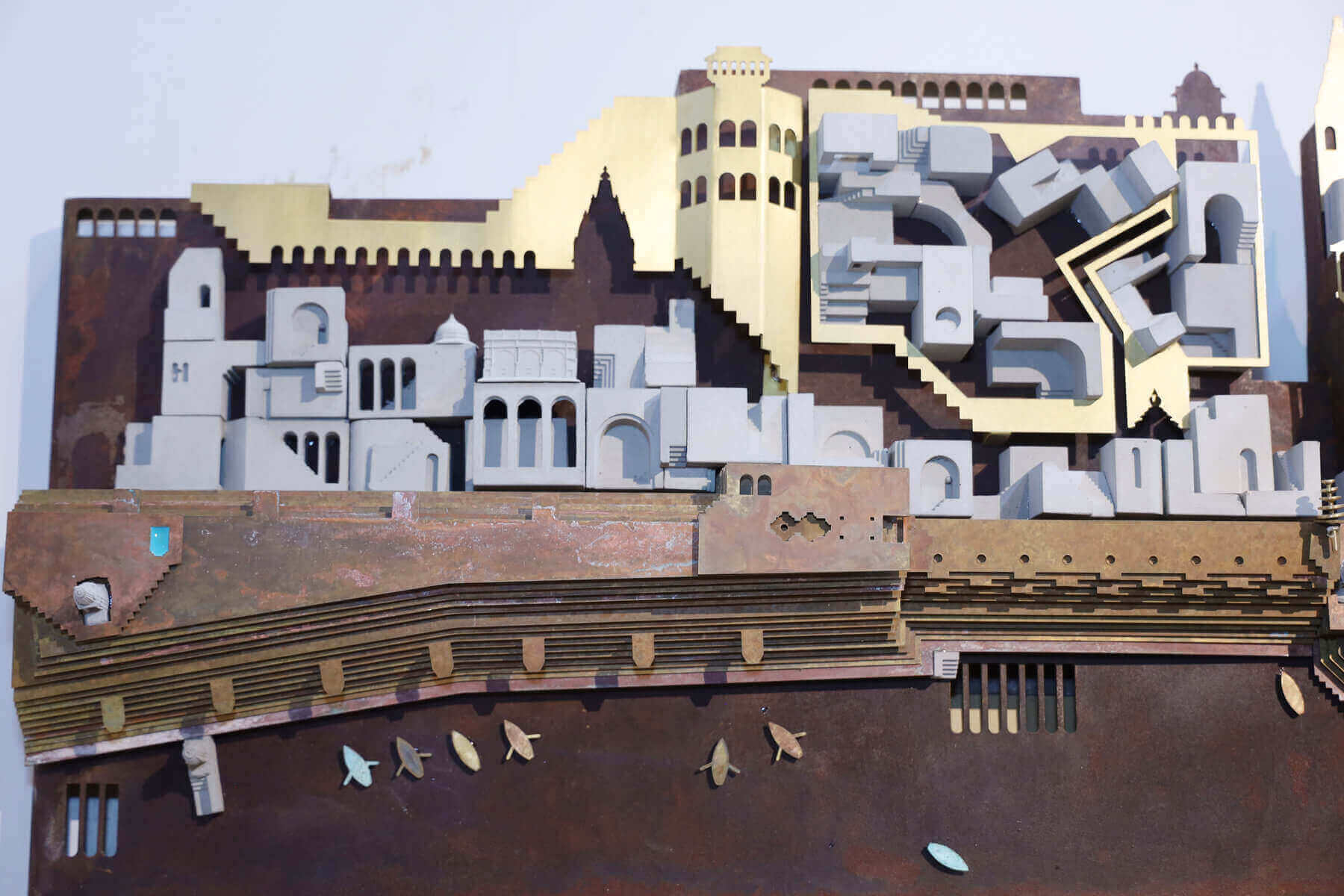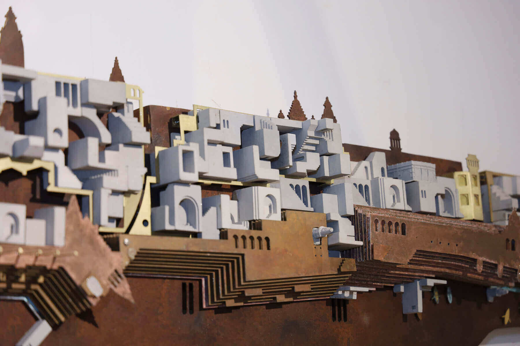 Ghats of Benaras – Wall Mural | Concrete (Cast), Corten Steel, Brass | H 16.4 x W 86.6 inches