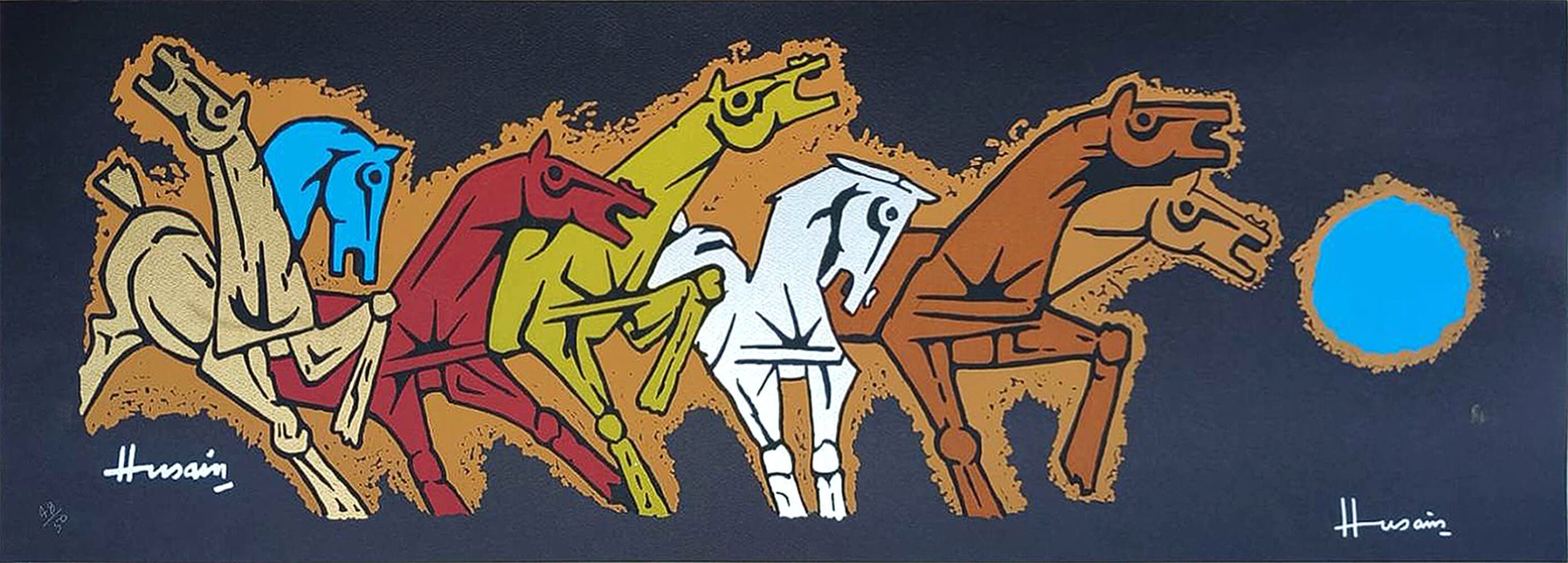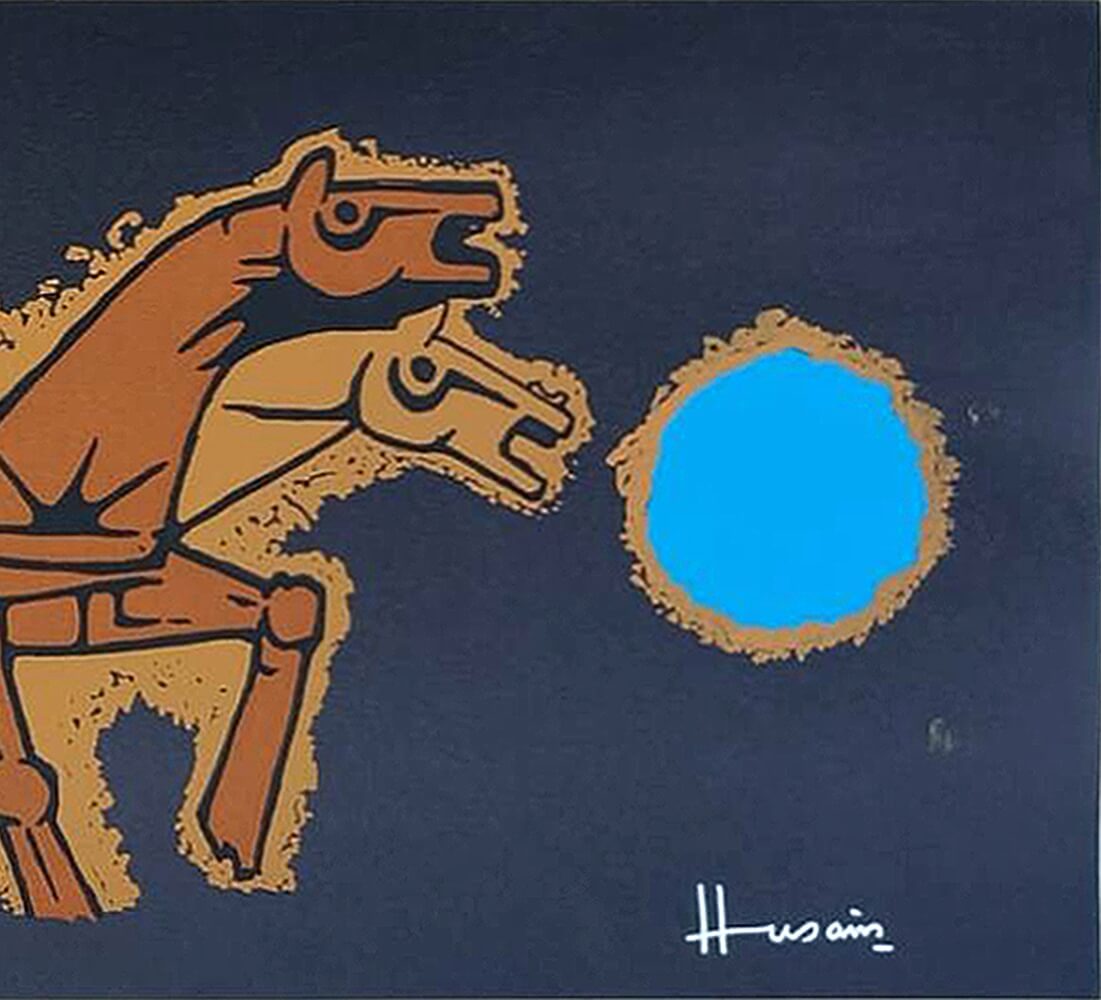 M.F. Husain | Horses | Serigraph on Paper | 39 x 19 inches