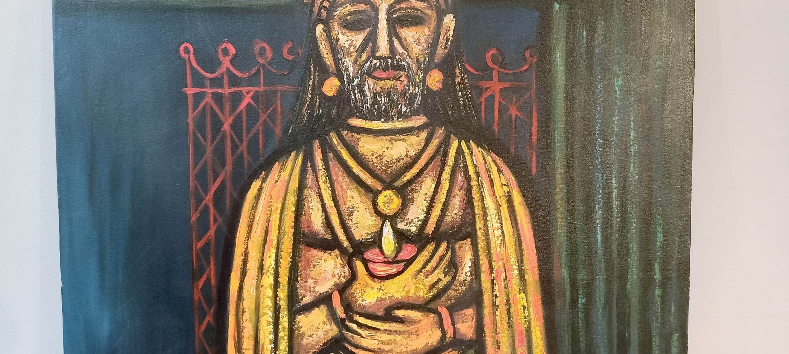 Rabin Mondal was part of the Group of Eight in Bengal and is known for his expressionist, raw style. He often painted distorted kings, queens, and courtiers, as symbols of corruption, decay, and the human condition, reflecting both history and contemporary politics.