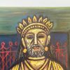 Rabin Mondal often revisited the theme of kings and queens to critique authority, tyranny, and human frailty. His “Kings” series is one of his most recognized, blending historical imagery with a modernist, almost grotesque visual language.