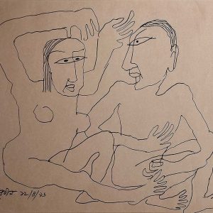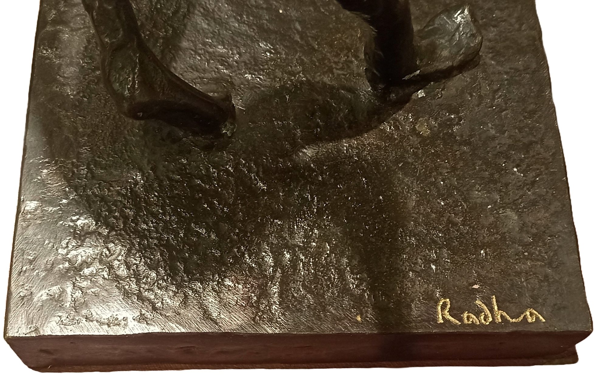 Mentored by two prominent figures of modern Indian art—Ramkinkar Baij and Sarbari Roy Choudhary— Radhakrishnan has experimented with a wide variety of materials such as molten bronze, beeswax, and plaster of paris, where the tactile, physical process of working with the material is as essential as the final work. Through his iconic bronze figures, he connects to the ordinary man’s innermost quest for expressing himself or herself through the contours and figuration of the body.