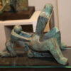 Cast in bronze and finished with a rich, weathered patina of green and earthy tones, the sculpture carries both material weight and timeless character. The textured surface enhances its tactile presence, while the fluidity of the forms brings warmth and humanity to the piece.