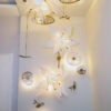Finished in a palette of soft whites, warm golds, and subtle metallic tones, the installation exudes sophistication while maintaining a calming presence. Ideal for feature walls, luxury interiors, hospitality spaces, or gallery environments, this artwork functions both as an atmospheric lighting solution and a statement sculptural installation.