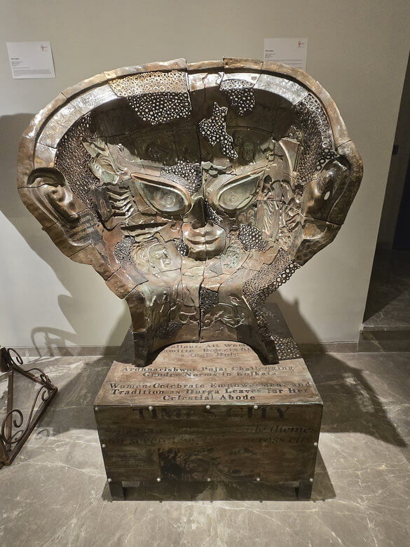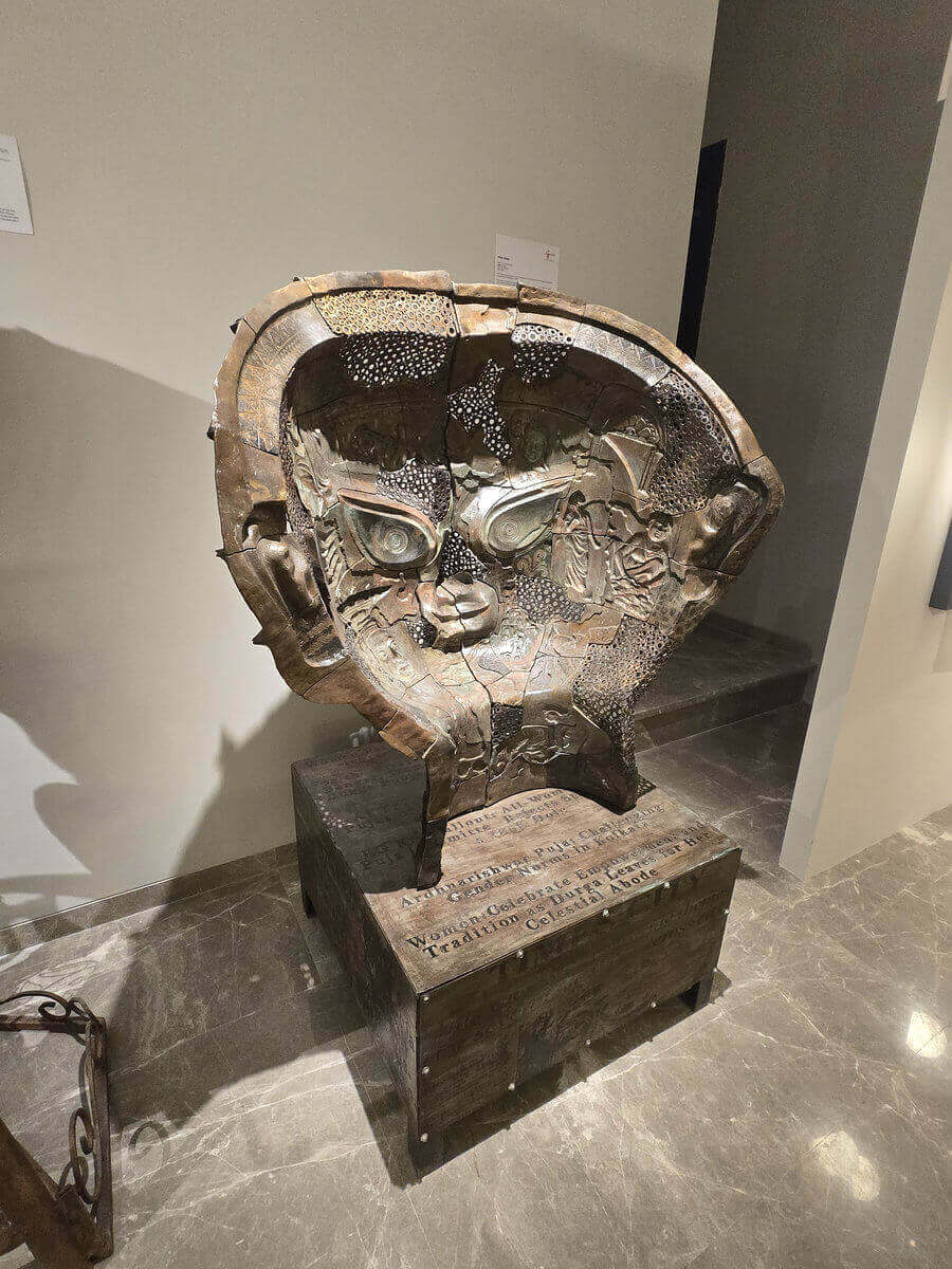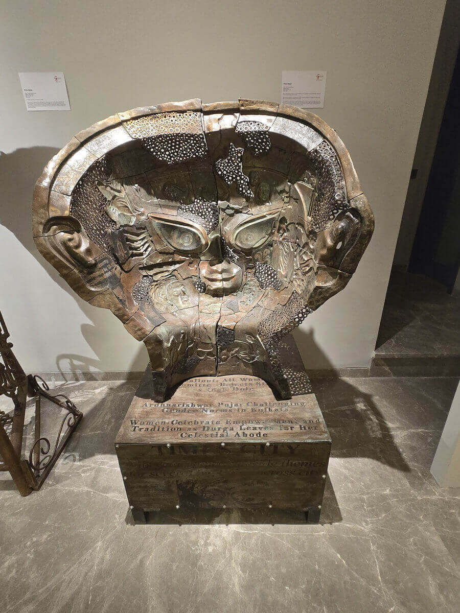 The amalgamation of positive and negative moulds, pieces of industrial screws and metal sheets come together to preach the ordinary women, their everyday journey, the struggle and strength. Durga here is not only divine, she holds the smallest bits of stories imprinted on her face, she’s a symbol, created out of the feminine energy that every women carries within.