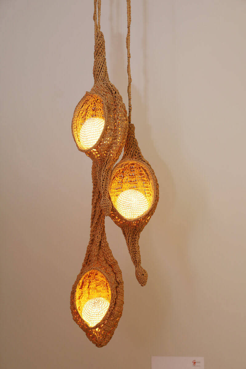 Suspended in quiet anticipation, the paper twine crocheted nest cradles its luminous nestling, a promise yet to unfold. Inspired from the weaver birds nest, the woven threads, each a stitch of patience, form a protective cocoon, sheltering the fragile glow of new beginnings. The light, tender yet insistent, presses against the embrace of its enclosure, much like an unhatched egg sensing the call of the world beyond. It is a waiting womb, a gentle refuge where time lingers, nurturing the transition between what was and what will be. And when the moment arrives, when the warmth within grows too vast to be contained, the promise will unfurl. The cocoon ill soften, the light will surge forward, spilling into the darkness, claiming space, and becoming. It is the promise of birth, of emergence, of the inevitable unfolding of potential, held, nurtured, and then set free.