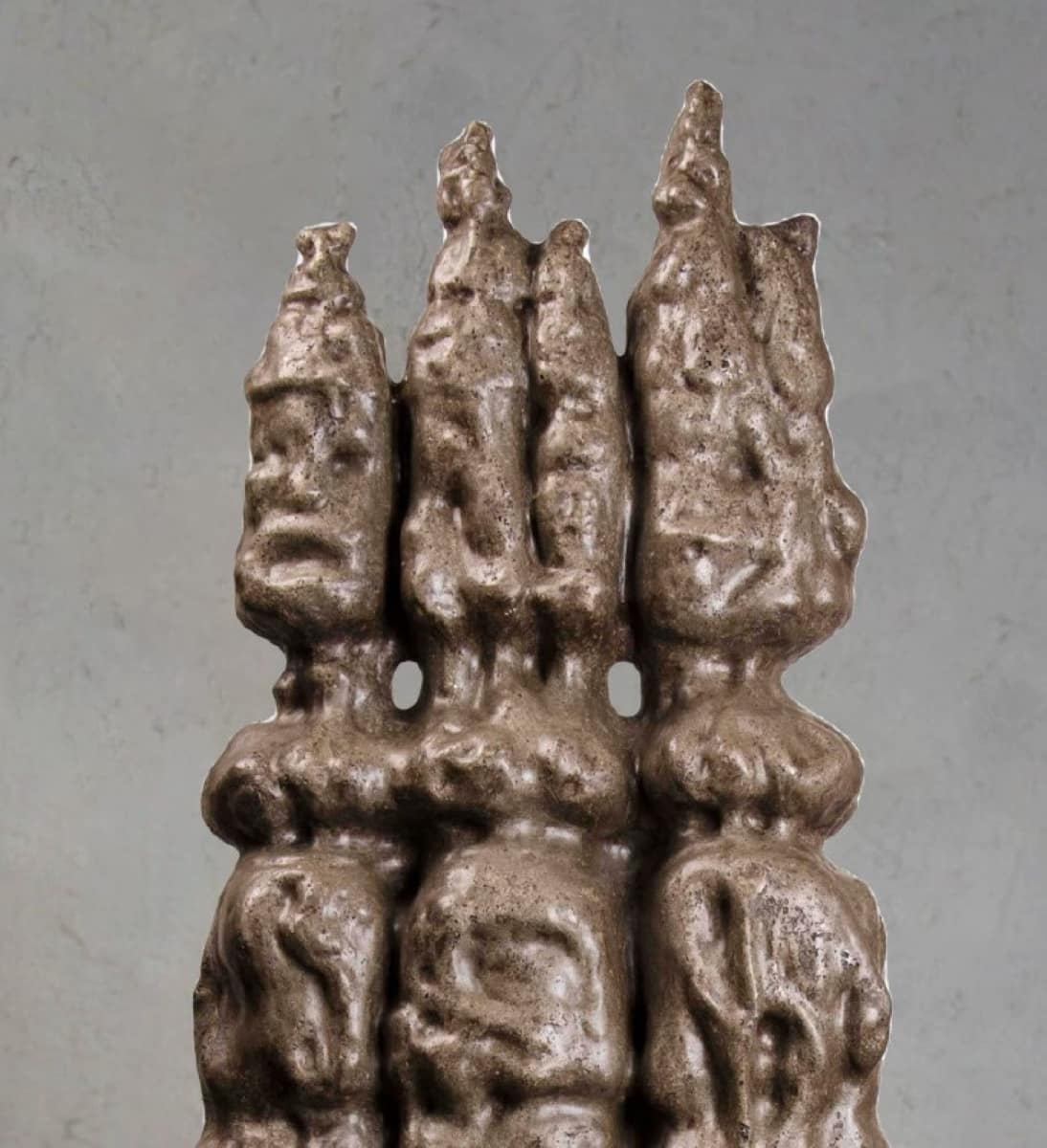Like whispers rising from ancient stone, Trinity embodies the eternal triad – Brahma, Vishnu, and Mahesh – in a silent harmony of creation, preservation, and dissolution. Layered organic forms ascend in clustered rhythm, their molten, earthy finish evoking weathered cliffs and timeless caverns.