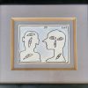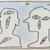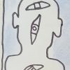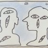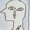 This intriguing artwork by Jogen Chowdhury, dated 2003, is a compelling example of his distinct visual language that blends surrealism with psychological depth. Created using ink and pastel on paper, the piece features two stylized human heads rendered in minimalist outlines against a pale blue wash. What immediately stands out are the multiple eye-like motifs embedded across their faces and bodies—suggesting heightened perception, inner vision, or emotional fragmentation. The distorted forms and asymmetrical features evoke a sense of tension and introspection. Chowdhury, known for exploring the human condition and subconscious through semi-abstract forms, seems here to question identity, perception, and the multiplicity of self. The mirror-like juxtaposition of the two figures also hints at duality—perhaps of thought, persona, or perspective.