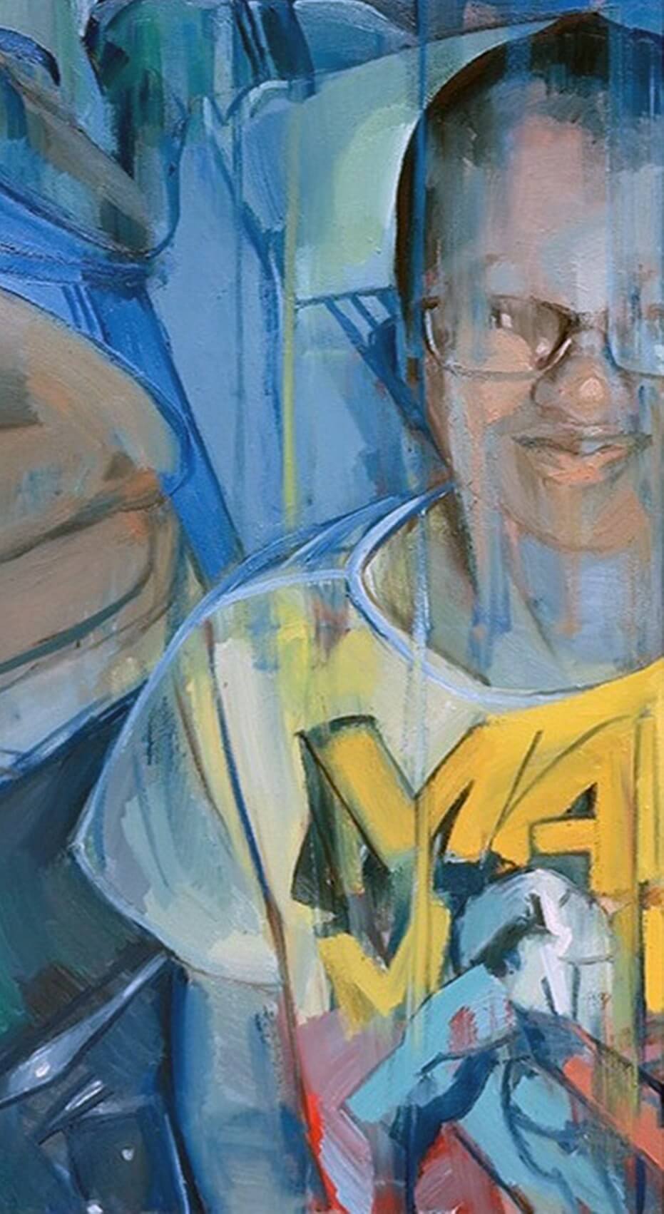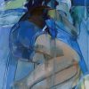 This painting captures a deeply intimate and introspective moment, rendered through a cool palette of blues and muted tones that evoke calmness and emotional depth. The composition features two figures — one lying curled up on a bed, seemingly lost in sleep or contemplation, and another in the foreground, smiling faintly with a reflective, almost wistful expression. The transparency and fluidity of the brushstrokes create a dreamlike quality, as if memory and present reality are intertwined. The artist plays with perspective and emotional contrasts — the resting figure conveys vulnerability and solitude, while the partially smiling face suggests resilience or a moment of quiet acceptance. Through its layered tones and expressive technique, the painting becomes a poignant exploration of human connection, introspection, and the fragile balance between inner emotions and outward appearances.
