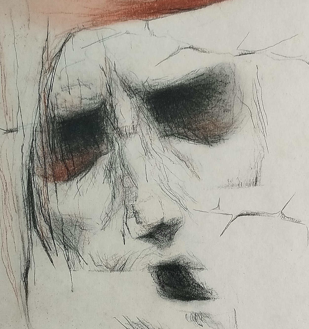 This haunting artwork by Wasim Kapoor, created in 1995, embodies his signature exploration of human suffering and despair. The ghostly, fragmented face emerges from the textured background, with deep-set, shadowed eyes and cracked features evoking pain and vulnerability. The muted palette, accentuated by hints of red, enhances the emotional intensity, making the composition deeply expressive. Kapoor’s masterful use of light and shadow, along with delicate yet raw detailing, gives this piece a poignant, almost ethereal presence, reflecting his deep engagement with themes of anguish and resilience.