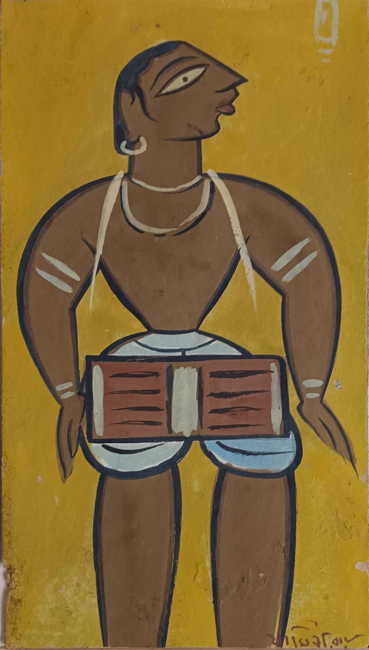 Jamini Roy | Playing Dhol | Tempera on Board | 12.2 x 6.6 inches | Circa