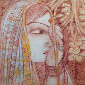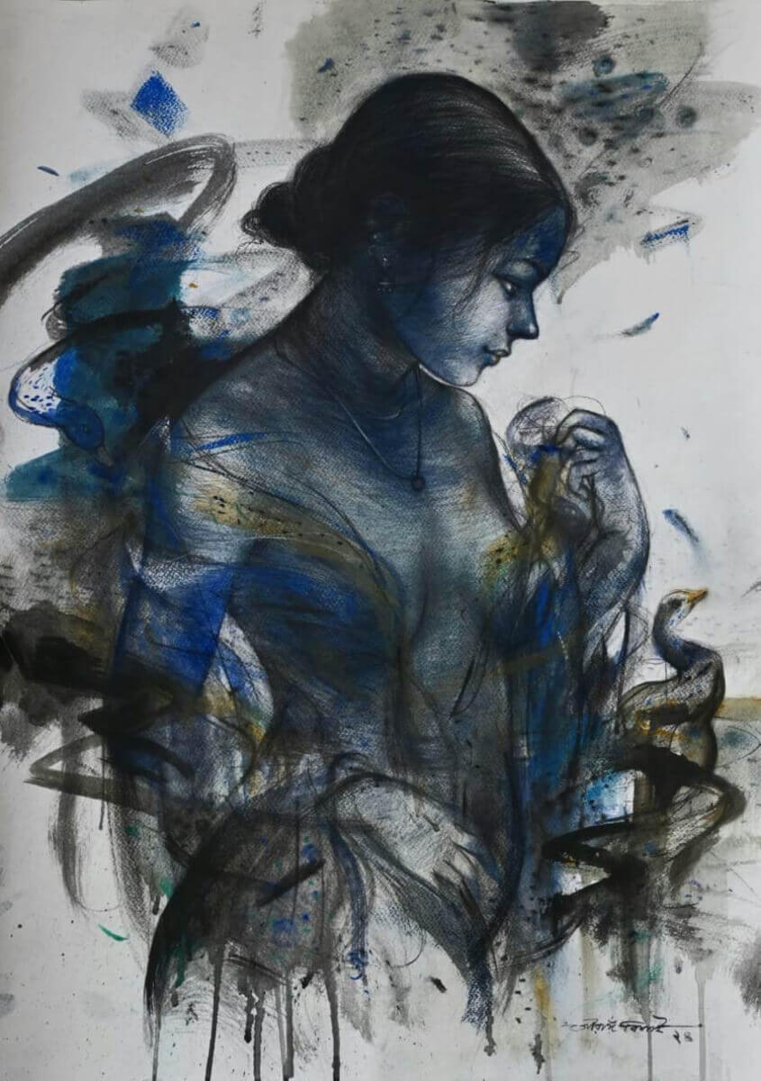 Created in mixed media on paper, this artwork beautifully captures femininity in dialogue with the natural world. It is introspective yet alive, quiet yet emotionally charged — a soulful addition to any contemporary collection.