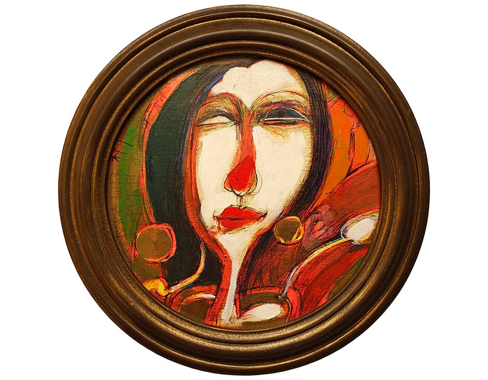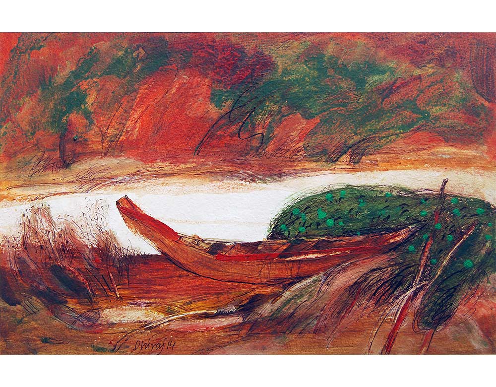 In his later works the crucial medium is acrylic paint used on canvas. He has used all the primary colors with small tints of wash, which makes the painting come alive with vibrancy. Since his forte is drawing, we also see strong and bold lines that cut the figures and forms from the background. In this series Choudhary`s subjects are simple and communicative. He uses the images of man and woman, mother and child, clowns or natural images like flowers, foliage, animals, birds and butterflies. In 2001, Dhiraj was invited to Hertfordshire, UK to curate an exhibition and conduct art workshops on the theme `Love`. He is currently teaching at the Delhi College of Art, part of Delhi University.
