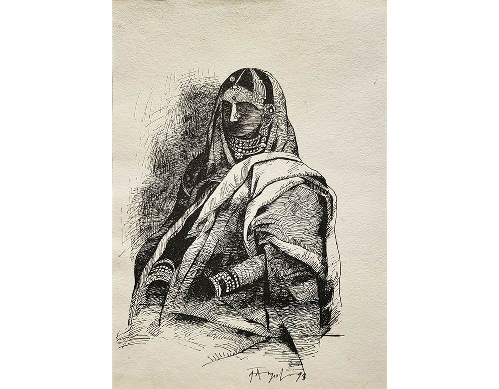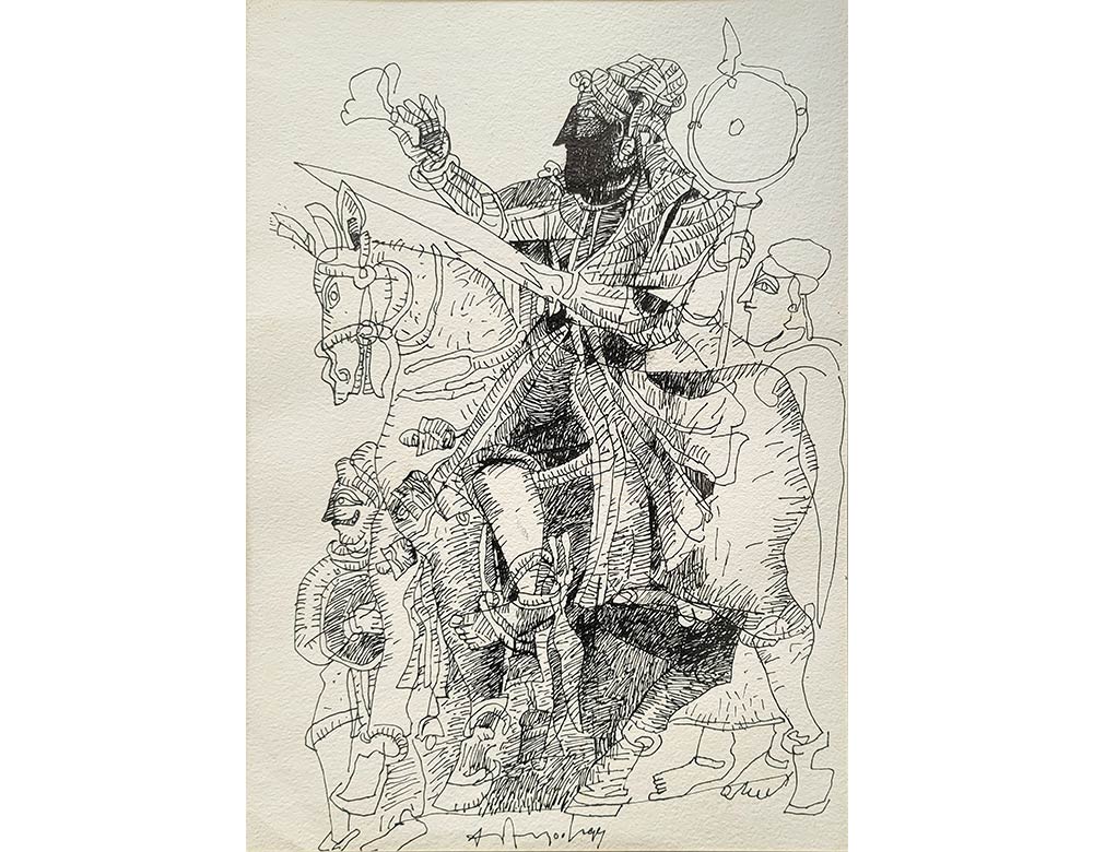 Born in 1938 in Tirucharapalli in Tamil Nadu, K.M. Adimoolam moved to Chennai in 1960 where he enrolled at the Government School of Arts and Crafts. After completing a Diploma in Advanced Painting in 1966, he began to work on a series of black and white portraits of Mahatma Gandhi. Adimoolam sketched almost a hundred drawings covering 60 years of Gandhi’s life.
