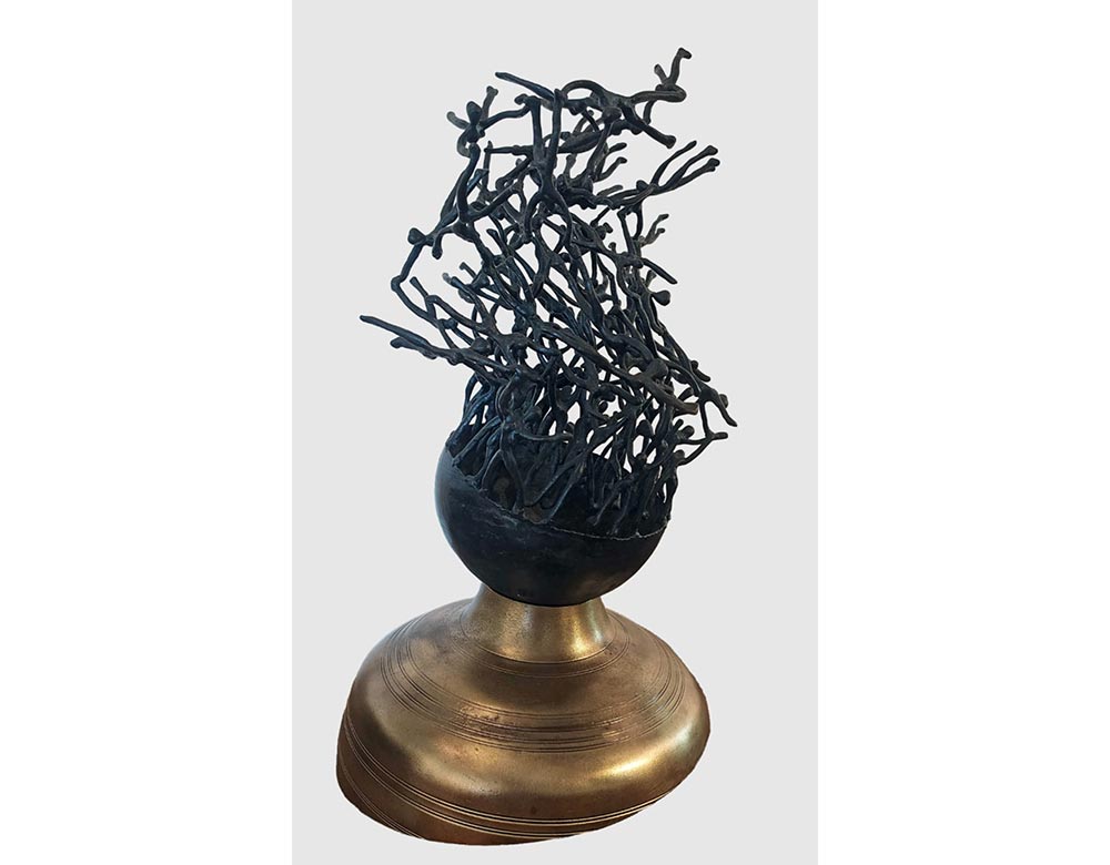 Radhakrishnan’s accolades include an award for the best sculpture award in 1980 from Birla Academy of Art and Culture, Calcutta, and a research grant the following year from the Lalit Kala Akademi to work at Garhi Studios, New Delhi. Several of his sculptures are installed around the world— Cotignac (France), London, Denmark, and Chicago, and large works have been commissioned in Dehradun, Bikaner, New Delhi, Goa, Santiniketan, and, of course, in his native Kerala. He lives and works in New Delhi.