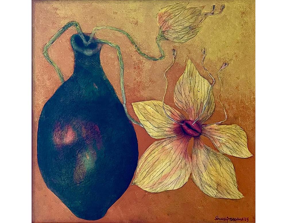 In 1984, he founded Arts Acre, an artists’ village in Calcutta, and has worked as editor of Art Today magazine. Awarded by institutions like Birla Academy of Art and Culture, Kolkata, Lalit Kala Akademi, West Bengal, and All India Fine Arts and Crafts Society, New Delhi, he was the subject of a documentary film by Goutam Ghose, titled Shuva and Me, in which the two visited Germany to meet German Nobel-laureate Günter Grass. Shuvaprasanna continues to live and work in Kolkata with his artist wife Shipra Bhattacharya.