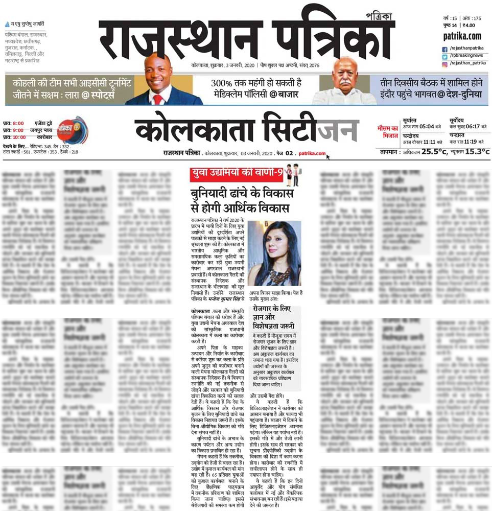 Today’s Rajasthan Patrika talks about Business growth thoughts this New Year 2020 .